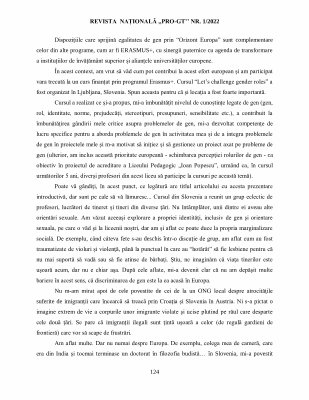 Cursul a realizat ce şi-a propus , mi-a îmbunătățit nivelul de cunoștințe legate de gen ( gen , rol , identitate , norme , prejudecăți , stereotipuri , presupuneri , sensibilitate etc .), a contribuit la îmbunătăţirea gândirii mele critice asupra problemelor de gen , mi-a dezvoltat competențe de lucru specifice pentru a aborda problemele de gen în activitatea mea şi de a integra problemele de gen în proiectele mele şi m-a motivat să inițiez și să gestionez un proiect axat pe probleme de gen ( ulterior , am inclus această prioritate europeană - schimbarea percepţiei rolurilor de gen - ca obiectiv în proiectul de acreditare a Liceului Pedagogic „ Ioan Popescu ”, urmând ca , în cursul următorilor 5 ani , diverşi profesori din acest liceu să participe la cursuri pe această temă ).