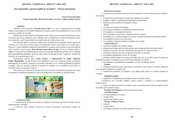 REVISTA NAȚIONALĂ „ PRO-GT ” NR . 2 / 2023 „ Fii responsabil , respectă regulile de circulație !” – Proiect educaţional