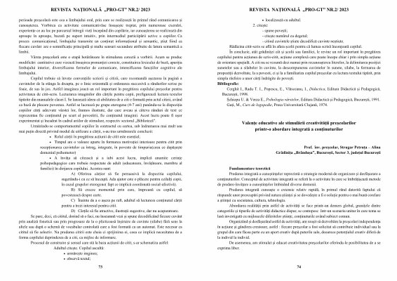 Valențe educative ale stimulării creativității preșcolarilor printr-o abordare integrată a conținuturilor