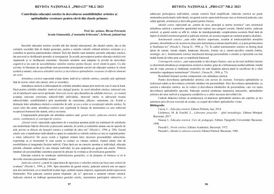 Contribuţia educaţiei estetice la dezvoltarea sensibilităților artistice și aptitudinilor creatoare pentru elevii din clasele primare