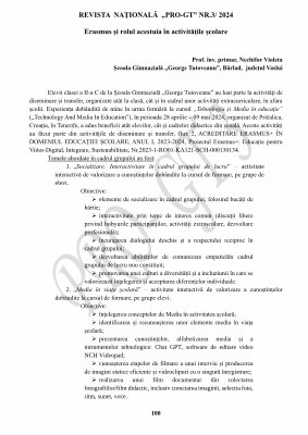 REVISTA NAȚIONALĂ „ PRO-GT ” NR . 3 / 2024 Erasmus și rolul acestuia în activitățile școlare