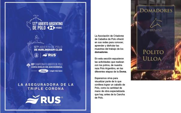La Asociación de Criadores de Caballos de Polo ofreció en sus redes para conocer , aprender y disfrutar las muestras del trabajo de los domadores .