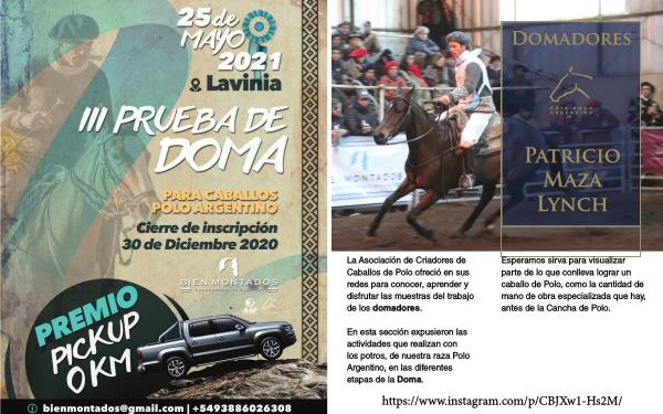 La Asociación de Criadores de Caballos de Polo ofreció en sus redes para conocer , aprender y disfrutar las muestras del trabajo de los domadores .
