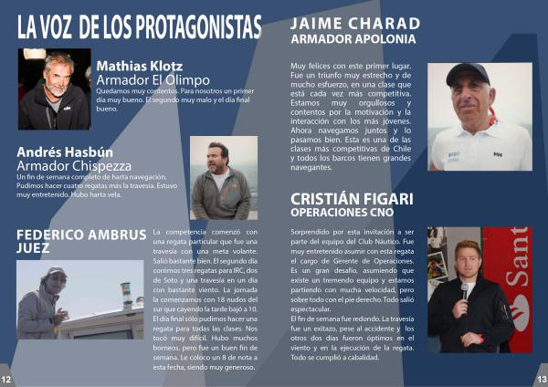 L a c o m p et e n ci a c o m e n z ó c o n u n a r e g at a p arti c ul ar q u e f u e u n a tr a v esí a c o n u n a m et a v ol a nt e. S ali ó b ast a nt e bi e n. El s e g u n d o dí a c orri m os tr es r e g at as p ar a I R C, d os d e S ot o y u n a tr a v esí a e n u n dí a c o n b ast a nt e vi e nt o. L a j or n a d a l a c o m e n z a m os c o n 1 8 n u d os d el s ur q u e c a y e n d o l a t ar d e b aj ó a 1 0. El dí a fi n al s ól o p u di m os h a c er u n a r e g at a p ar a t o d as l as cl as es. N os t o c ó m u y difí cil. H u b o m u c h os b or n e os, p er o f u e u n b u e n fi n d e s e m a n a. L e c ol o c o u n 8 d e n ot a a est a f e c h a, si e n d o m u y g e n er os o.