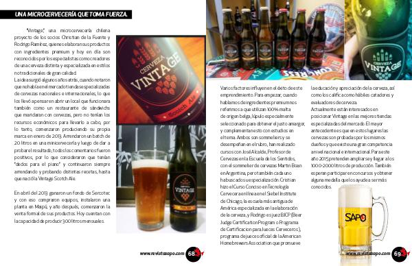 “ Vintage”, una microcervecería chilena proyecto de los socios Christian de la Fuente y Rodrigo Ramírez, quienes elaboran sus productos con ingredientes premium y hoy en día son reconocidos por los especialistas como creadores de una cerveza distinta y especializada en estilos no tradicionales de gran calidad. La idea surgió algunos años atrás, cuando notaron que no había en el mercado tiendas especializadas de cervezas nacionales e internacionales, lo que los llevó a pensar en abrir un local que funcionara también como un restaurante de sándwichs que maridaran con cervezas, pero no tenían los recursos económicos para llevarlo a cabo, por lo tanto, comenzaron produciendo su propia marca en enero de 2013. Arrendaron un batch de 20 litros en una minicervecería y luego de dar a probar el resultado, todos los comentarios fueron positivos, por lo que consideraron que tenían“ dedos para el piano” y continuaron siempre arrendando y probando distintas recetas, hasta que nació la Vintage Scotch Ale.