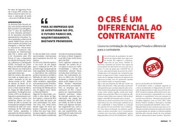 No setor de Segurança Privada o Grupo GPS concluiu sua oferta inicial em abril com sucesso e valorização de ações – cerca de 2,5 bilhões de reais .