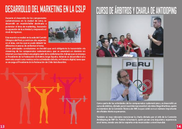 Como parte de las actividades de los campeonatos sudamericanos, se desarrolló un curso de árbitros, dictado por el Juez Internacional de Colombia Diego Martínez, quién es miembro de la Comisión Técnica de IWF, la que contó con un número importante de oficiales técnicos peruanos.