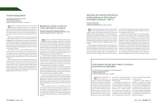 tância sólida, denominada bioplástico. Este, em suma, apresenta