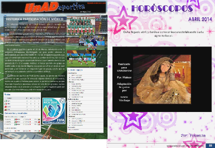 itzjak@unadiccion.com HISTORICA PARTICIPACIÓN DE MÉXICO La selección mexicana de futbol femenil sub-17, termino su participación en la copa del mundo de la especialidad que se llevó acabo en Costa Rica del 15 de Marzo al 4 de Abril. Después de haber ganado el pre-mundial que se llevó en Jamaica el año pasado eliminando la selección de Estados Unidos, que era una de las selecciones favoritas para ganar el mundial de la especialidad, con esto la selección nacional llego inspirada a esta justa deportiva al país centroamericano. En el primer partido jugado el 16 de Marzo, debutando ante la selección Colombiana demostrando un gran poder ofensivo y derrotándola por un contundente 4 – 0, en el siguiente partido que jugo el combinado nacional fue ante su similar de China, con la que también demostró gran capacidad ofensiva y que también derroto con goleada de 4 – 0 al equipo Asiático, el tercer partido del grupo se realizó ante el equipo de Nigeria con quien se sufrió un revés al caer derrotada y así terminar en segundo lugar de grupo, con lo que se enfrentaría a la potencia asiática y candidato al título. El partido de cuartos de final contra Japón, se perdió de manera dolorosa ya que aunque la selección nipona dominó el encuentro, contó con suerte y fortuna para vencer la portería mexicana, ya que Alvarado la portera mexicana estuvo en una de sus grandes noches atajando todo y que solo con un autogol y un penal regalado pudo ser vencida. Con esto México queda eliminada de la justa.