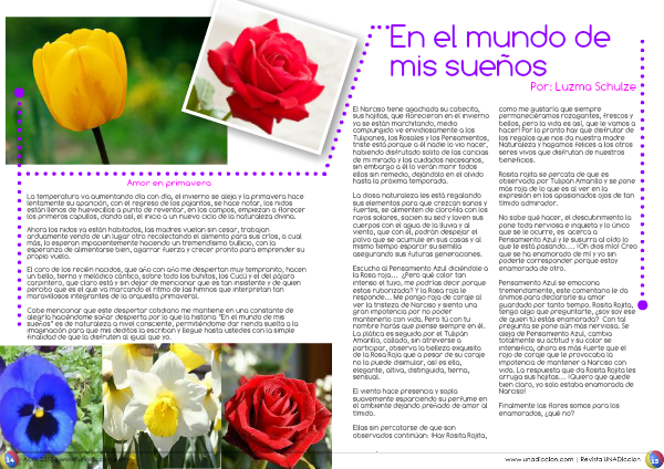 Cabe mencionar que este despertar cotidiano me mantiene en una constante de alegría haciéndome soñar despierta por lo que la historia “En el mundo de mis sueños” es de naturaleza a nivel consciente, permitiéndome dar rienda suelta a la imaginación para que mis deditos la escriban y llegue hasta ustedes con la simple finalidad de que la disfruten al igual que yo.