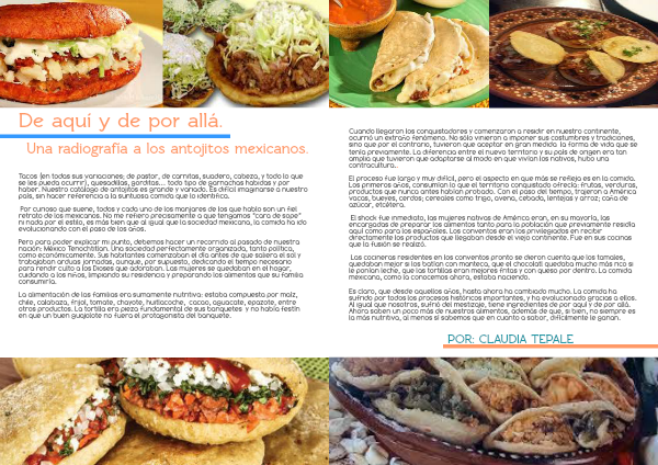 Es claro, que desde aquellos años, hasta ahora ha cambiado mucho. La comida ha sufrido por todos los procesos históricos importantes, y ha evolucionado gracias a ellos. Al igual que nosotros, sufrió del mestizaje, tiene ingredientes de por aquí y de por allá. Ahora saben un poco más de nuestros alimentos, además de que, si bien, no siempre es la más nutritiva, al menos sí sabemos que en cuanto a sabor, difícilmente le ganan.