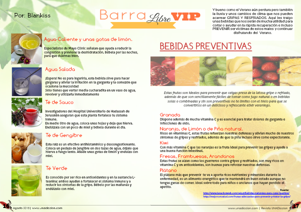 Estas frutas son ideales para prevenir que caigas presa de la latosa gripe o refriado, además de que son sencillamente fáciles de tomar como jugo natural o en bebidas solas o combinadas y sin son preventivas no te limites con el hielo para que se convertirlos en un delicioso y refrescante elixir veraniego.