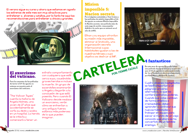 El verano sigue su curso y ahora que estamos en agosto los estrenos de este mes son muy atractivos para entretener a jóvenes y adultos, por lo tanto he aquí las recomendaciones para entretener a chicos y grandes.
