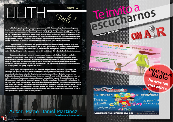 Una roca brillante cayó cerca de su casa en un hermoso arbolado y el calor y su brillo llamaron a Lilith frente a ella . La roca la llamaba en un extraño idioma que solo Lilith pudo comprender y ante la atónita cara de una pequeña niña que ante la luz de una roca llegaba del espacio. La luz azul turquesa desapareció. Lilith quedo a la merced de las pequeñas animas danzantes que emanaban de su boca, a la luna tímida y al viento que violento cortaba el algodón de su ropa; cerró los ojos y despertó del sueño.