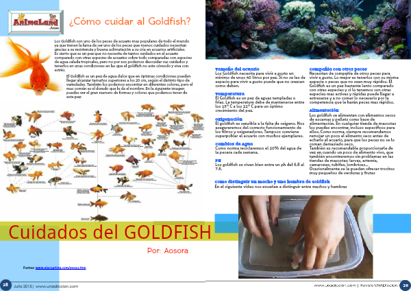 El Goldfish es un pez de aguas templadas o frías. La temperatura debe de mantenerse entre los 15º C a los 22º C para un óptimo crecimiento del pez.