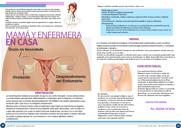 Debemos tener conciencia y cuidar de nosotras y de nuestras hijas, tener en cuenta que la menstruación “normal” es de 2 a 5 días aproximadamente de un flujo moderado, el ginecólogo definirá si se debe tomar ultrasonidos para verificar el tamaño y dará tratamiento para estos.