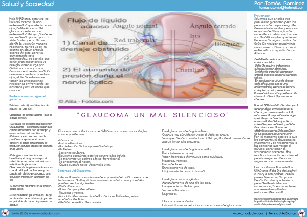 Bueno UNADictos debo decirles que al tener ya el glaucoma se debe de checar, como esta nuestra salud, más que nada la presión arterial, ya que influye mucho en las enfermedades de los ojos. Pero antes de que suceda esto, se debe de ir a tomar estudios con el oftalmólogo acerca de la condición de tus ojos para poder prevenir.