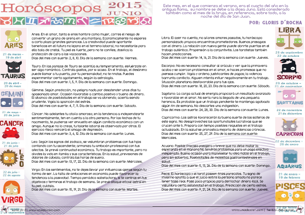 Escorpio: No es necesario consultar al oráculo y ver que la primavera acaba y se acercan problemas en el amor, si haces promesas que no piensas cumplir. Vigila y ordena justificantes de pagos; la videncia barrunta conflicto. Alguien intenta influir negativamente en tu trabajo. Situación planetaria desfavorable para tus ojos.