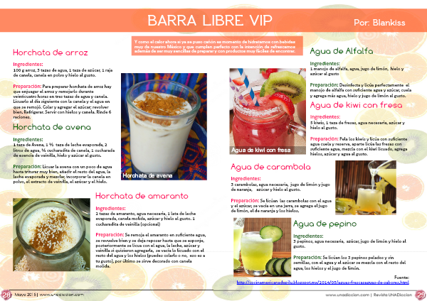 Preparación: Licuar la avena con un poco de agua hasta triturar muy bien, añadir el resto del agua, la leche evaporada y mezclar, incorporar la canela en polvo, el extracto de vainilla, el azúcar y el hielo.