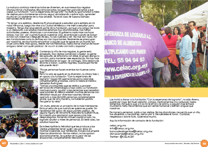La mañana continúa mientras todos se divierten, en sus mesas hay regalos; champú libros y bufandas. Muy emocionados, los guardan para llevarlos a sus casas. La fundación “Con la esperanza de lograrlo” ha dado la oportunidad a miles de viejitos para mantenerse activos, seguir socializando y sobre todo, aprender mucho en un ambiente de lo más amable. Tal es el caso de Susana Dámaso Hernández de 65 años: