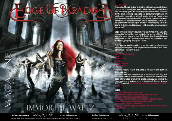 LINKS: www. edgeofparadiseband. com https:// www. facebook. com / EdgeOfParadiseBand https:// twitter. com / EdgeofParadise1 http:// www. oninstagram. com / profile / edgeofparadise http:// youtube. com / edgeofparadiseworld iTunes: http:// apple. co / 2kZzeur Spotify: https:// open. spotify. com / album / 63FDYWZJvDrFcu4SYf5kFM info @ revistalamaga. com www. revistalamaga. com