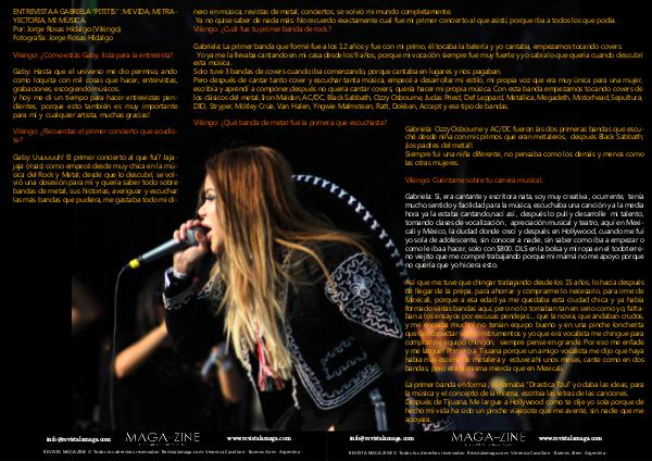 Gabriela: Ozzy Osbourne y AC / DC fueron las dos primeras bandas que escuché desde niña con mis primos que eran metaleros, después Black Sabbath; ¡ los padres del metal!. Siempre fui una niña diferente, no pensaba como los demás y menos como las otras mujeres.