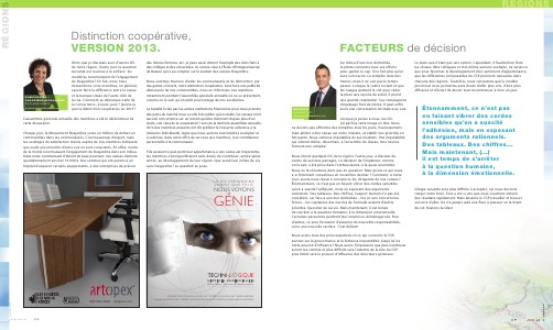 Alors que je discutais avec d’ autres DG de notre région, l’ autre jour, la question suivante est revenue à la surface: les membres reconnaissent-ils l’ engagement de Desjardins? En fait, nous nous demandions si les membres, en général, savent faire la différence entre la caisse et la banque située de l’ autre côté de la rue. Comment se démarque-t-elle de la concurrence, à leurs yeux? Qu’ est-ce que la distinction coopérative en 2013?