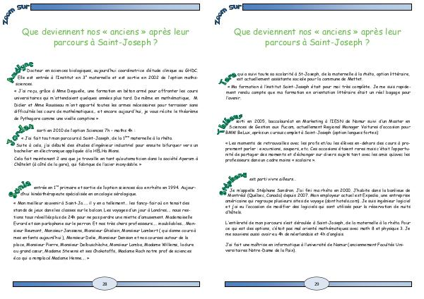« J’ai fait tout mon parcours à Saint-Joseph, de la 1 ère maternelle à la rhéto.