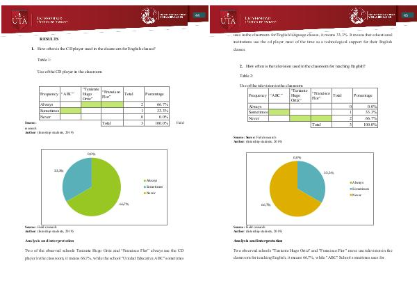 Two observed schools "Teniente Hugo Ortiz" and "Francisco Flor" never use television in the
