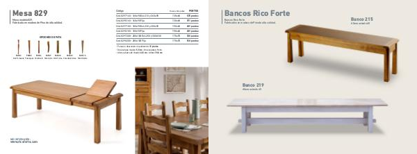 Bancos Rico Forte Bancos Rico Forte Fabricados en madera de Pino de alta calidad. Banco 219 Altura asiento 45 Banco 215 Altura asiento 45