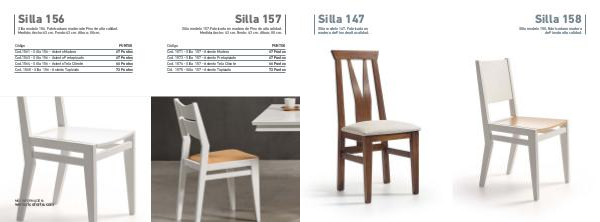 Silla 147 Silla modelo 147. Fabricada en madera de Pino de alta calidad. Silla 158 Silla modelo 158. Fabricada en madera de Pino de alta calidad.