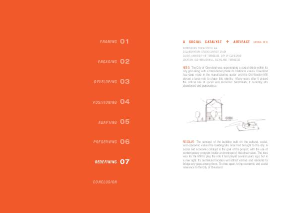 RESOLVE: The concept of the building built on the cultural, social, and economic values the building / site once had brought to the city. A social and economic catalyst is the goal of the project, with the use of contemporary program inside an envelope of historical value. The idea was for the Mill to play the role it had played several years ago, but in a new light. Its centralized location will attract visitors and residents to bridge any gaps among them. To once again, bring economic and social relevance to the City of Cleveland.