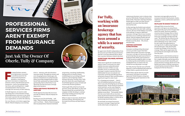 In that meeting, the Nesbit team realized that Tully and his firm don’ t offer auditing services. Because of the liability associated with auditing, it requires additional insurance coverage. Once it was revealed that there was no auditing-related risk at Oberle, Tully & Company, Nesbit advised the firm to eliminate certain coverages.“ I think it cut it by about 30 % at least,” detailed Tully.