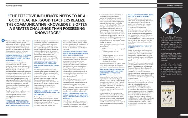 When I was interviewed in the Harvard Business Review , I was asked , “ What is the most common ‘ area for improvement ’ for the executives that you meet ?” My answer was , “ Winning too much .” Focus on making a difference . The more other people can ‘ be right ’ or ‘ win ’ with your idea , the more likely your idea is to be successfully executed .