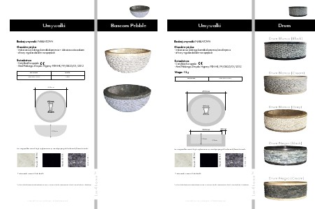 ta umywalka może być wykonana w następujących kolorach/kamieniach: