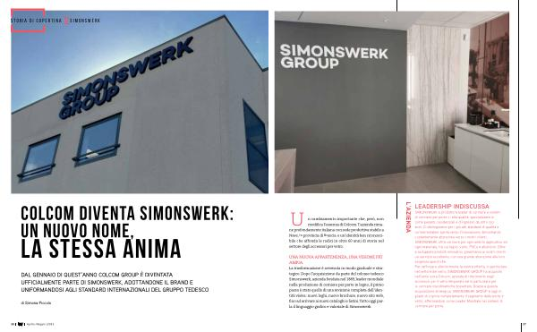 SIMONSWERK è produttore leader di cerniere e sistemi di cerniere per porte di alta qualità, specializzato in porte pesanti, residenziali e d’ ingresso da oltre 130 anni. Ci distinguiamo per i più alti standard di qualità e un’ inarrestabile spinta verso l’ innovazione, dimostrando costantemente attenzione verso i nostri clienti. SIMONSWERK offre cerniere per ogni ambito applicativo ed ogni materiale, tra cui legno, vetro, PVCu e alluminio. Oltre a sviluppare prodotti innovativi, garantiamo ai nostri clienti un servizio eccellente, con una grande attenzione alle loro esigenze specifiche. Per rafforzare ulteriormente la nostra offerta, in particolare nel settore del vetro, SIMONSWERK GROUP ha acquisito nell’ anno 2019 Colcom, azienda di riferimento negli accessori per il vetro temperato ed in particolare per le cerniere oleodinamiche brevettate. Grazie a questa acquisizione strategica, SIMONSWERK GROUP è oggi in grado di coprire completamente il segmento delle porte in vetro, affermandosi come Leader Mondiale nei sistemi di cerniere per porte.