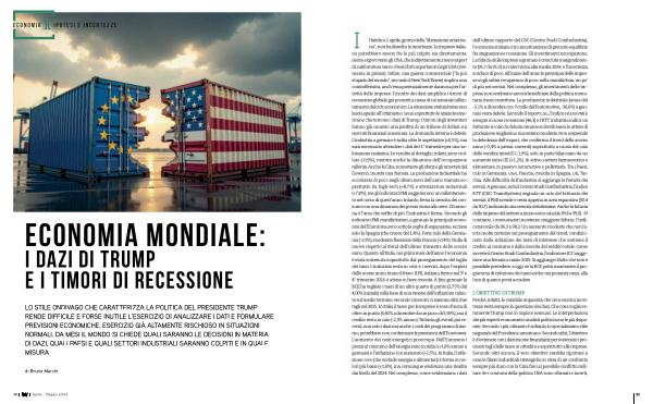 I l fatidico 2 aprile, giorno della“ liberazione americana”, non ha dissolto le incertezze. Le imprese italiane potrebbero essere fra le più colpite sia direttamente, meno export verso gli USA, che indirettamente, meno export di subfornitura verso i Paesi forti esportatori negli USA( Germania in primis). Infine, una guerra commerciale(“ la più stupida del mondo”, secondo il New York Times) implica una controffensiva, anch’ essa potenzialmente dannosa per l’ attività delle imprese. L’ incubo dei dazi amplifica i timori di recessione globale, già presenti a causa di un naturale rallentamento del ciclo economico. La situazione statunitense non lascia spazio all’ ottimismo. Sono soprattutto le aziende americane che temono i dazi di Trump. I timori degli investitori hanno già causato una perdita di un trilione di dollari sui mercati finanziari americani. La domanda interna è debole. L’ industria a gennaio è salita oltre le aspettative(+ 0,5 %), ma sarà necessario attendere i dati del 1 ° trimestre per una valutazione realistica. Le vendite al dettaglio, infatti, sono crollate(-0,9%), mentre anche la dinamica dell’ occupazione rallenta. Anche la Cina, nonostante gli sforzi e gli incentivi del Governo, mostra una frenata. La produzione industriale ha accelerato di poco negli ultimi mesi dell’ anno trainata soprattutto da high-tech(+ 8,7 %) e attrezzature industriali(+ 7,8 %), ma gli indicatori PMI suggeriscono un rallentamento nel corso di quest’ anno. Intanto, frena la crescita dei consumi con una dinamica dei prezzi vicina allo zero. L’ Eurozona è l’ area che soffre di più: l’ industria è ferma. Secondo gli indicatori PMI manifatturieri, a gennaio le principali economie dell’ Eurozona sono sotto la soglia di espansione, esclusa solo la Spagna( che cresce del 1,4 %). Forte calo della Germania(-2,9%), moderata flessione della Francia(-0,4%). Nulla di nuovo rispetto al trend dell’ ultimo trimestre dello scorso anno. Quanto all’ Italia, nei primi mesi dell’ anno l’ economia è stata sostenuta soprattutto dal proseguimento del taglio dei tassi. L’ industria resta in crisi e i servizi, dopo l’ exploit dello scorso anno, tirano il freno. Il PIL italiano, fermo nel 3 ° e 4 ° trimestre 2024, è atteso in lieve crescita. A fine gennaio la BCE ha tagliato i tassi di un altro quarto di punto( 2,75 % dal 4,00 % iniziale) sulla base di una visione dell’ inflazione calante sul medio termine; secondo i mercati, ci saranno altri due tagli nel 2025. In Italia il tasso per le imprese è sceso finora di oltre un punto( 4,40 % a dicembre da un picco di 5,59 %), ma il credito resta in calo(-2,3% annuo). Tuttavia gli eventi più recenti, non solo i dazi ma anche i costi dei programmi di riarmo, potrebbero non confermare le previsioni dell’ Eurotower. L’ aumento dei costi energetici preoccupa. Nell’ Eurozona i prezzi al consumo dell’ energia sono in rialzo(+ 1,8 % annuo a gennaio) e l’ inflazione è in aumento(+ 2,5 %). In Italia, l’ inflazione core( che esclude energia e alimentari) è ferma su valori più bassi(+ 1,6 %), ma comunque evidenzia una risalita dai livelli del 2024. Nel complesso, come evidenziano i dati dell’ ultimo rapporto del CSC( Centro Studi Confindustria), l’ economia italiana è in una situazione di precario equilibrio fra stagnazione e recessione. Gli investimenti non ripartono. La fiducia delle imprese a gennaio è cresciuta marginalmente( 95,7 da 95,3) su valori vicini alla media 2024, e l’ incertezza si riduce di poco. All’ inizio dell’ anno le previsioni delle imprese sugli ordini recuperano di poco nella manifattura, un po’ di più nei servizi. Nel complesso, gli investimenti delle imprese non sembrano ancora beneficiare della politica monetaria meno restrittiva. La produzione industriale( scesa del-3,1% a dicembre con il crollo dell’ automotive,-36,6%) a gennaio resta debole. Secondo il report CSC, l’ indice HCOB PMI è sempre in zona recessione( 46,3) e l’ RTT industria indica un fatturato in calo; la fiducia rimane su livelli bassi, le attese di produzione migliorano ma restano modeste. Non sorprende la debolezza dell’ export, che conferma il trend dello scorso anno(-0,4% a prezzi correnti) soprattutto a causa del calo delle vendite intraUE(-1,9%), solo in parte bilanciato da un aumento extra UE(+ 1,2 %). In attivo i settori farmaceutico e alimentare, in passivo automotive e pelletteria. Tra i Paesi, calo in Germania, USA, Francia, crescita in Spagna, UK, Turchia. Alle difficoltà dell’ industria si aggiunge la frenata dei servizi. A gennaio, nota il Centro Studi Confindustria, l’ indice RTT( CSC-TeamSystem) segnala un calo del fatturato dei servizi; il PMI scende e resta appena in area espansiva( 50,4 da 50,7), indicando una crescita debolissima. Anche la fiducia delle imprese del settore a inizio anno cala( da 99,6 a 99,0). Al contrario, i consumatori mostrano maggiore fiducia: l’ indicatore sale da 96,3 a 98,2. Un aumento modesto che non lascia molte certezze sul proseguimento del trend, condizionato dalla riduzione dei tassi di interesse che sostiene il credito al consumo e dalla crescita del reddito totale. Come avverte il Centro Studi Confindustria, l’ indicatore ICC suggerisce una frenata a inizio 2025. Si aggiunge il fatto che non è possibile prevedere, a oggi, se la BCE potrà mantenere il programma di riduzione dei tassi anche nei prossimi mesi, alla luce di quanto potrà accadere.