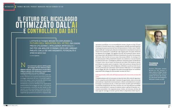 Product Manager presso Binder + Co AG, Austria, è stato relatore al Glass Trends Live di glasstec 2024, dove ha parlato del futuro del riciclaggio ottimizzato dall’ intelligenza artificiale e basato sui dati.
