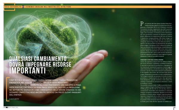 P er il settore del vetro piano il primo tema di attualità alla fiera glasstec di quest ’ anno ( in programma a Düsseldorf dal 22 al 25 ottobre ), ovverosia l ’ economia circolare , rappresenta una delle questioni più importanti del decennio dal punto di vista sia ecologico che economico . Il rottame di vetro reimmesso nel ciclo produttivo consente di diminuire materie prime , abbassare la temperatura del forno di fusione e risparmiare energia preziosa . Allo stesso tempo , un chilogrammo di vetro float ottenuto da vetro di riciclo comporta circa 0,3 kg in meno di emissioni di CO 2 rispetto a un vetro prodotto esclusivamente da materie prime vergini . Il problema è che i volumi di rottame di vetro provenienti dalla demolizione , smantellamento o ristrutturazione di vecchi edifici sono assai scarsi , mentre i flussi di materiale di riciclo non ritornano all ’ industria del vetro piano nella misura desiderata . L ’ articolo seguente analizza le varie ragioni di questa situazione e indica le possibili soluzioni .