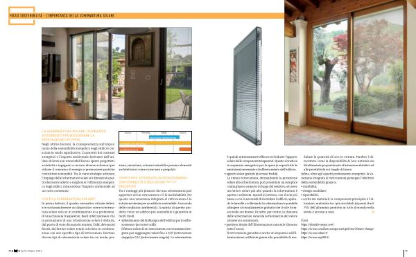 • apporti solari gratuiti ( nei mesi freddi ). Lo stesso vetrocamera , demandando la protezione solare alla schermatura , può presentare un semplice coating basso emissivo in luogo del selettivo , ed avere un fattore solare più alto quando la schermatura è aperta o sollevata . Quindi in inverno , con il sole più basso e con la necessità di riscaldare l ’ edificio , aprendo le lamelle o sollevando la schermatura è possibile attingere al riscaldamento gratuito che il sole fornisce nelle ore diurne . Di notte , per contro , la chiusura delle schermature ostacola la fuoriuscita del calore attraverso i serramenti ;