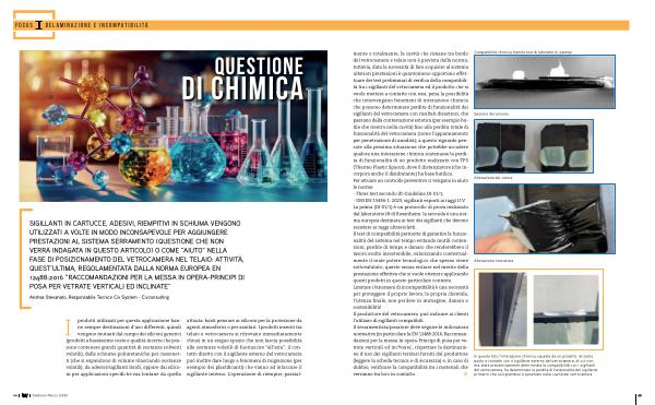 mente o totalmente , la cavità che rimane tra bordo del vetrocamera e telaio non è prevista dalla norma ; tuttavia , data la necessità di fare acquisire al sistema ulteriori prestazioni è quantomeno opportuno effettuare dei test preliminari di verifica della compatibilità tra i sigillanti del vetrocamera ed il prodotto che si vuole mettere a contatto con essi , pena la possibilità che intervengano fenomeni di interazione chimica che possono determinare perdita di funzionalità dei sigillanti del vetrocamera con risultati disastrosi , che passano dalla contestazione estetica ( per esempio butile che rientra nella cavità ) fino alla perdita totale di funzionalità del vetrocamera ( come l ’ appannamento per penetrazione di umidità ); a questo riguardo pensate alla pessima situazione che potrebbe accadere qualora una interazione chimica scatenasse la perdita di funzionalità di un prodotto realizzato con TPS ( Thermo Plastic Spacer ), dove il distanziatore ( che incorpora anche il disidratante ) ha base butilica . Per attuare un controllo preventivo ci vengono in aiuto le norme : - Three test secondo ift-Guideline DI-01 / 1 ; - UNI EN 15434-1 : 2023 , sigillanti esposti ai raggi U . V . La prima ( DI-01 / 1 ) è un protocollo di prova realizzato dal laboratorio Ift di Rosenheim , la seconda è una norma europea destinata ai test dei sigillanti che devono resistere ai raggi ultravioletti . Il test di compatibilità permette di garantire la funzionalità del sistema nel tempo evitando inutili contenzioni , perdite di tempo e danaro che renderebbero il lavoro svolto insostenibile , valorizzando contestualmente il reale potere tecnologico che spesso viene sottovalutato ; questo senza entrare nel merito della prestazione effettiva che si vuole ottenere applicando questi prodotti in questo particolare contesto . Limitare i fenomeni di incompatibilità è una necessità per proteggere il proprio lavoro , la propria clientela , l ’ utenza finale , non perdere in immagine , danaro e sostenibilità ! Il produttore del vetrocamera può indicare ai clienti l ’ utilizzo di sigillanti compatibili . Il serramentista / posatore deve seguire le indicazioni normative ( in particolare la EN 12488:2016 , Raccomandazioni per la messa in opera-Principi di posa per vetrate verticali ed inclinate ), rispettare la destinazione d ’ uso dei sigillanti terziari forniti dal produttore ( leggere la scheda tecnica e di sicurezza ) e , in caso di dubbio , verificare la compatibilità tra i materiali che verranno tra loro in contatto .