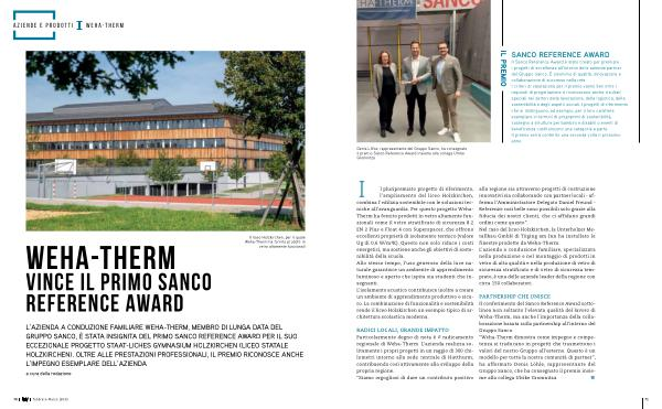 L ’ AZIENDA A CONDUZIONE FAMILIARE WEHA-THERM , MEMBRO DI LUNGA DATA DEL GRUPPO SANCO , È STATA INSIGNITA DEL PRIMO SANCO REFERENCE AWARD PER IL SUO ECCEZIONALE PROGETTO STAAT-LICHES GYMNASIUM HOLZKIRCHEN ( LICEO STATALE HOLZKIRCHEN ). OLTRE ALLE PRESTAZIONI PROFESSIONALI , IL PREMIO RICONOSCE ANCHE L ’ IMPEGNO ESEMPLARE DELL ’ AZIENDA