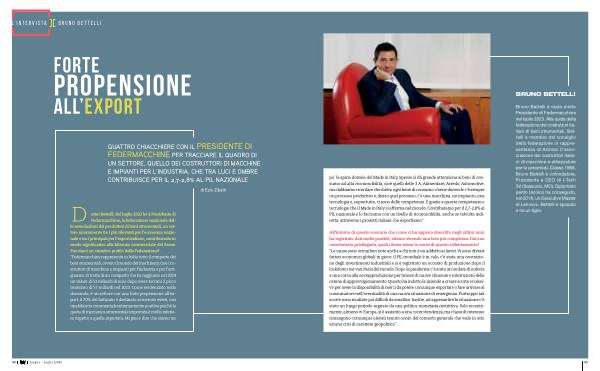 po’ la spina dorsale del Made in Italy. Spesso si dà grande attenzione ai beni di consumo ad alta riconoscibilità, cioè quelli delle 3 A, Alimentare, Arredo, Automotive, ma dobbiamo ricordare che dietro ogni bene di consumo o bene durevole c’ è sempre un processo produttivo e, dietro quel processo, c’ è una macchina, un impianto, una tecnologia e, soprattutto, ci sono delle competenze. È grazie a queste competenze e tecnologie che il Made in Italy si afferma nel mondo. Contribuiamo per il 2,7-2,8 % al PIL nazionale e lo facciamo con un livello di riconoscibilità, anche se talvolta indiretta, attraverso i prodotti italiani che esportiamo”.