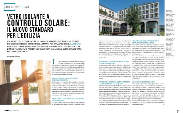 PROTEZIONE SOLARE, ISOLAMENTO TERMICO E TRASMISSIONE DELLA LUCE IN UNO Nelle zone a clima temperato dell’ Europa Centrale, nella scelta del rivestimento si dovrebbe tenere conto di un rapporto equilibrato tra protezione solare, isolamento termico e trasmissione della luce. In questo caso si consiglia l’ uso di un vetro combinato come il Sanco Sun Combi Neutral 70 / 35 NG, altamente selettivo: con un valore g( trasmittanza energetica totale) inferiore al 35 %, offre infatti una buona protezione solare in estate e un apporto di energia solare passivo durante la stagione fredda, mentre la trasmittanza luminosa( LT) è superiore al 70 % e garantisce un’ illuminazione ottimale dell’ ambiente.