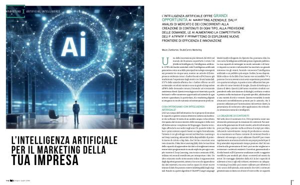 OPPORTUNITÀ AL MARKETING AZIENDALE . DALLE ANALISI DI MERCATO E DEI CONCORRENTI ALLA CREAZIONE DI CONTENUTI DI OGNI TIPO , ALLA PREVISIONE DELLE DOMANDE , LE AI AUMENTANO LA COMPETITIVITÀ DELLE AZIENDE E PERMETTONO DI ESPLORARE NUOVE FRONTIERE DI EFFICIENZA E INNOVAZIONE