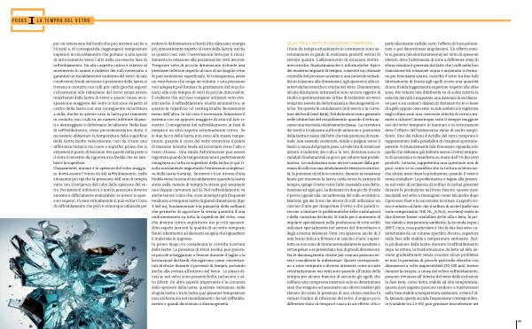 per un ’ estensione dal bordo che può arrivare anche a 50 mm ) e , di conseguenza , raggiungono temperature superiori in riscaldamento che portano a una specie di arricciamento verso l ’ alto nella successiva fase di raffreddamento . Un altro aspetto critico è relativo al movimento in avanti e indietro dei rulli necessario a garantire un riscaldamento uniforme del vetro . In tale condizione i bordi anteriore e posteriore della lastra si trovano a contatto con rulli più caldi ( perché esposti ciclicamente alla radiazione del forno senza essere mascherati dalla lastra di vetro ) e questo causa un ’ e- spansione maggiore del vetro in tali zone rispetto al centro della lastra con una conseguente incurvatura a sella . Anche in questo caso la lastra può rimanere in contatto con i rulli su un numero inferiore di punti e danneggiarsi o deformarsi localmente . Nella fase di raffreddamento , come precedentemente detto , è necessario abbassare la temperatura della superficie della lastra molto velocemente , così da creare una differenza termica tra cuore e superfici prima che si attraversi il punto di tensione . Per questo nella pratica il vetro è investito da vigorosa aria fredda che ne lambisce la superficie . Chiaramente , minore è lo spessore del vetro maggiore dovrà essere l ’ intensità del raffreddamento ; nelle situazioni più tipiche la pressione dell ’ aria di tempra varia con il reciproco del cubo dello spessore del vetro . Per spessori inferiori a 2 mm la pressione diventa enorme e difficilmente realizzabile ; se invece lo spessore supera i 15 mm virtualmente si può evitare l ’ aria di raffreddamento che però è comunque utilizzata per evitare le deformazioni ai bordi ( che rilasciano energia più intensamente rispetto al resto della lastra ). Anche in questo caso vale l ’ osservazione fatta per il riscaldamento in relazione alla pezzatura dei vetri lavorati . Temprare vetri di piccola dimensione richiede una pressione inferiore rispetto al caso di un singolo vetro di pari estensione superficiale ; di conseguenza , avere un ventilatore che eroga un volume o una pressione non adeguati può limitare la prestazione del macchinario alla sola tempra di vetri di piccole dimensioni . È evidente che nel caso vengano utilizzati vetri rivestiti anche il raffreddamento risulta asimmetrico , in quanto la superficie col coating irradia decisamente meno dell ’ altra . In tal caso è necessario bilanciare il sistema con un apporto maggiore di aria sul lato rivestito . L ’ omogeneità del raffreddamento in fase di tempra è un altro aspetto estremamente critico . Se le due facce della lastra non sono alla stessa temperatura , quando il cuore del vetro attraversa il punto di tensione la lastra tende ad incurvarsi verso l ’ alto o verso il basso . Una simile deformazione può essere registrata quando la temperatura non è perfettamente omogenea su tutta la superficie della lastra ( e qui risulta nuovamente importante l ’ estensione complessiva della lastra trattata ). Se invece c ’ è un ritorno d ’ aria fredda verso la zona di riscaldamento quando la lastra entra nella camera di tempra la stessa può assumere una doppia curvatura ( ad S ). Nel raffreddamento va anche tenuto conto che , vista la sempre più frequente tendenza a temprare lastre di grandi dimensioni ( tipo 3.3x6 m ), fondamentale è la planarità delle soffianti che permette di apportare la stessa quantità d ’ aria uniformemente su tutta la superficie del vetro , cosa che diventa critica soprattutto nei piccoli spessori . Altri aspetti inerenti la qualità di un vetro temprato fanno riferimento ad elementi esogeni che riguardano il materiale in ingresso . In primo luogo , va considerata la corretta ricottura delle lastre . La presenza di sforzi residui può generare piccole scheggiature o fessure durante il taglio o la lavorazione dei bordi che agiscono come concentratori di sforzo durante il processo di tempra , portando anche alla rottura all ’ interno del forno . Lo stesso dicasi se nel vetro sono presenti bolle , inclusioni o altri difetti . Un altro aspetto importante è la costanza dello spessore della lastra : qualsiasi variazione , nella singola lastra o tra le lastre , può generare temperature non uniformi sia nel riscaldamento che nel raffreddamento e quindi distorsioni o disomogeneità .