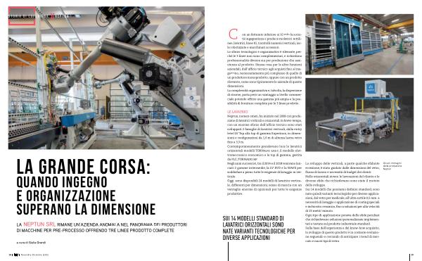 LE LAVATRICI Neptun, nomen omen, ha iniziato nel 2008 con produzione di lavatrici verticali e orizzontali. In breve tempo, con un enorme sforzo dell’ ufficio tecnico sono stati sviluppati 2 famiglie di lavatrici verticali, dalla entry level LV Top alla top di gamma Superinox, in dimensioni e configurazioni da 1,6 m di altezza lastra vetro fino a 3,3 m. Contemporaneamente prendevano luce le lavatrici orizzontali modelli TORNADO EASY, il modello elettromeccanico economico e la top di gamma, gestita da PLC, TORNADO HP Negli anni successivi, tra il 2014 e il 2018 venivano lanciati 2 gamme intermedie, la LV EVO e la WAVE per soddisfare a pieno tutte le esigenze di lavaggio in verticale. Oggi, sono disponibili 24 modelli di lavatrice verticale, differenti per dimensioni, senso di marcia con un ventaglio enorme di opzionali per tutte le esigenze produttive.