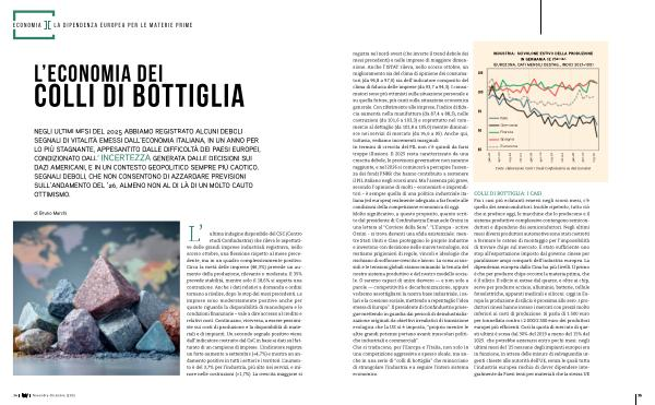 registra nel nord-ovest( che inverte il trend debole dei mesi precedenti) e nelle imprese di maggiore dimensione. Anche l’ ISTAT rileva, nello scorso ottobre, un miglioramento sia del clima di opinione dei consumatori( da 96,8 a 97,6) sia dell’ indicatore composito del clima di fiducia delle imprese( da 93,7 a 94,3). I consumatori sono più ottimisti sulla situazione personale e su quella futura; più cauti sulla situazione economica generale. Con riferimento alle imprese, l’ indice di fiducia aumenta nella manifattura( da 87,4 a 88,3), nelle costruzioni( da 101,6 a 103,3) e soprattutto nel commercio al dettaglio( da 101,8 a 105,0) mentre diminuisce nei servizi di mercato( da 95,6 a 95). Anche qui, tuttavia, vediamo incrementi marginali. In termini di crescita del PIL non c’ è quindi da farsi troppe illusioni. Il 2025 resta caratterizzato da una crescita debole, le previsioni governative non saranno raggiunte, e nel 2026 si comincerà a percepire l’ assenza dei fondi PNRR che hanno contribuito a sostenere il PIL italiano negli scorsi anni. Ma l’ assenza più grave, secondo l’ opinione di molti – economisti e imprenditori – è sempre quella di una politica industriale italiana( ed europea) realmente adeguata a far fronte alle condizioni della competizione economica di oggi. Molto significativo, a questo proposito, quanto scritto dal presidente di Confindustria Emanuele Orsini in una lettera al“ Corriere della Sera”.“ L’ Europa- scrive Orsini- si trova davanti una sfida esistenziale: mentre Stati Uniti e Cina proteggono le proprie industrie e investono con decisione nelle nuove tecnologie, noi restiamo prigionieri di regole, vincoli e ideologie che rischiano di soffocare crescita e lavoro. La corsa ai sussidi e le tensioni globali stanno minando la tenuta del nostro sistema produttivo e del nostro modello sociale. O saremo capaci di unire davvero— e non solo a parole— competitività e decarbonizzazione, oppure vedremo assottigliarsi la nostra base industriale, i salari e la coesione sociale, mettendo a repentaglio l’ idea stessa di Europa”. Il presidente di Confindustria prosegue mettendo in guardia dai pericoli di deindustrializzazione originati da obiettivi irrealistici di transizione ecologica che la UE si è imposta,“ proprio mentre le altre grandi potenze portano avanti muscolari politiche industriali e commerciali”. Che si traducono, per l’ Europa e l’ Italia, non solo in una competizione aggressiva e spesso sleale, ma anche in una serie di“ colli di bottiglia” che minacciano di strangolare l’ industria e a seguire l’ intero sistema economico.