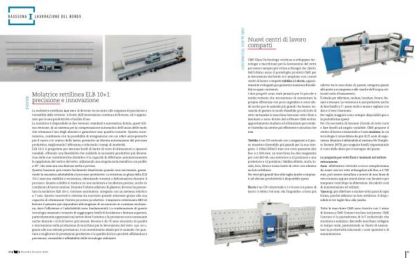 CMS Glass Technology continua a sviluppare tecnologie e macchinari per la lavorazione del vetro per essere sempre più vicina ai bisogni dei clienti . Nell ’ ultimo anno il portafoglio prodotti CMS per la lavorazione del bordo si è ampliato con i nuovi centri di lavoro compatti taktika ed electa , appositamente sviluppati per garantire massima flessibilità in spazi contenuti . I due progetti sono stati pensati per le piccole e medie vetrerie che necessitano di aumentare la propria efficienza con poco ingombro e sono ideali anche per le aziende più grandi che hanno necessità di gestire in modo flessibile piccoli lotti di vetri . Entrambe le macchine lavorano vetro float e laminato e sono dotate del software CMS Active , appositamente studiato ed ottimizzato per rendere l ’ interfaccia utente più efficiente e intuitiva che mai .