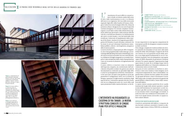 L ’ inserimento di nuovi edifici in contesti urbani richiede un ’ attenta analisi dello stato di fatto , delle trasformazioni in atto o in divenire dell ’ area in cui sorgeranno . Nel caso della nuova sede regionale degli uffici della Guardia di Finanza a Bologna si tratta di un ’ area di margine della città , chiusa da partizioni urbane e disegnata da una serie di spazi dal carattere eterogeneo . Un contesto complesso contrassegnato a nord dalla cortina delle infrastrutture logistiche della linea ferroviaria e della stazione dell ’ alta velocità , a sud dall ’ area dinamica e in trasformazione del centro sociale Dumbo , a est dai bordi della città stratificata . L ’ intervento di ampliamento della caserma di Via Tanari , vincitore di un ’ apposita gara dell ’ A- genzia del Demanio , fa parte del piano nazionale che ha messo in atto per valorizzare il patrimonio immobiliare pubblico , ridurre i costi di gestione , energetici e delle locazioni passive . La nuova struttura a cinque piani per uffici e magazzini , che è stata progettata dallo studio Demogo con metodologia BIM ( Building Information Modelling ), prende il posto di alcuni manufatti che sono stati demoliti . La condizione di ritaglio marginale su cui insiste il progetto è stata interpretata dallo studio di progettazione come un ’ occasione di relazione e di rigenerazione del comparto . Il nuovo edificio si inserisce come un elemento dall ’ impronta compatta , ma caratterizzato dall ’ articolazione del profilo in alzato che genera una serie di terrazzamenti in continuità con gli ambiti degli uffici e come loro prolungamento all ’ esterno . Terrazzamenti che sono stati concepiti come giardini in quota per permettere il collegamento visivo con il contesto di Bologna e garantire il miglioramento qualitativo degli spazi di lavoro . L ’ estensione spaziale articola il fronte sud con un collegamento aereo tra i nuovi uffici e gli spazi preesistenti della caserma Bertarini . Le faccia-